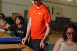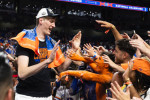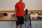 În momentul în care i-a cedat locul, coechipierul său Micah Handlogten i-a dat o palmă peste mână şi a schimbat câteva cuvinte cu el pentru a-l încuraja... şi părea foarte mic în picioare lângă el, deşi are totuşi 2,16 m.
