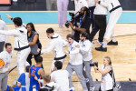 "La pauză, unii spectatori strigau să-l pun să joace", povesteşte Todd Golden, antrenorul echipei Florida Gators. "Le-am spus: 'Aveţi răbdare, va veni şi momentul lui'. La pauză, când conduceam cu 24 de puncte, le-am spus băieţilor că trebuie să înceapă bine repriza a doua, pentru ca tinerii să poată juca.