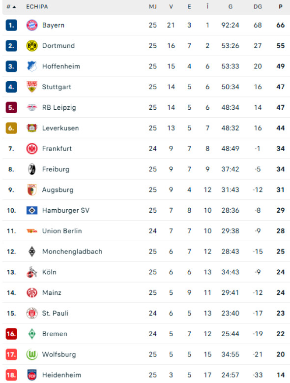 Clasamentul din Bundesliga