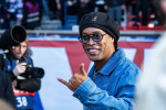 Ronaldinho (44 de ani), fostul jucător al lui PSG și al Barcelonei, a fost prezent pe Parc des Princes pentru a urmări partida dintre fostele sale echipe.