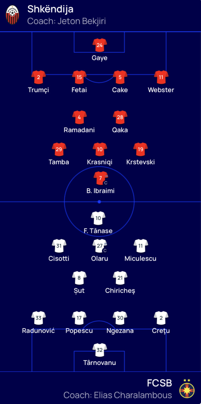 Echipa FCSB-ului pentru meciul tur cu Shkendija: