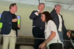 În imaginile surprinse, Haaland senior face câteva gesturi provocatoare către fanii campioanei Europei, înainte de a fi escortat de oamenii de ordine în afara lojei, alături de un alt bărbat.