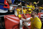 "ESTE NOUĂ TREIZECI ȘI AM VENIT LA MECI. AM LUAT-O PE MAMI DE LA SOMNUL EI LIN, PENTRU TRICOUL TĂU, DRĂGUȘIN! HAI, ROMÂNIA!", a fost mesajul scris de Ricardo pe un carton pe care l-a agitat la meci.