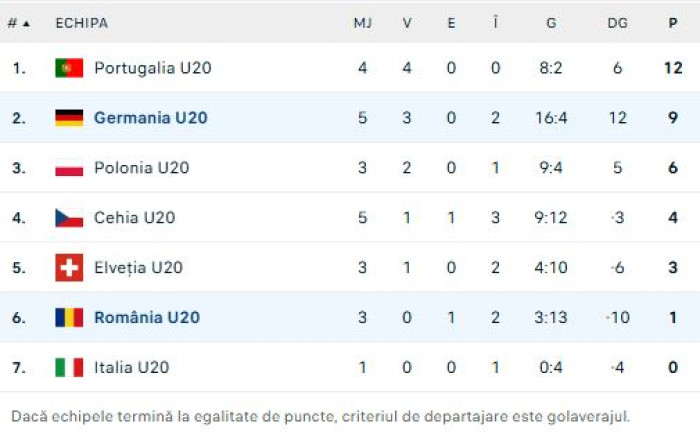 Clasament Elite League U20, după Germania U20 - România U20 6-0