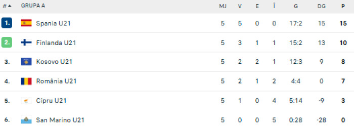 La jumătatea preliminariilor, România U21 ocupă locul 4 în Grupa A de calificare pentru EURO 2027, cu 7 puncte, fiind la un punct în spatele celor din Kosovo, la trei puncte în urma Finlandei şi la 8 puncte distanţă de liderul Spania.