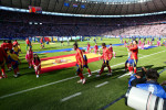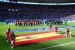 Înainte de meci s-au redat imnurile celor două țări, dar jucătorii Spaniei au păstrat tăcerea în timp ce din boxele arenei Olympiastadion se auzea "La Marcha Real".