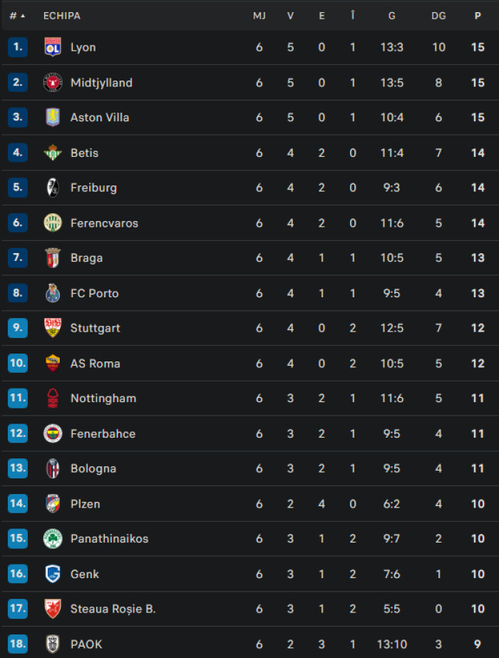 - Marcatori FCSB: Ngezana (min. 11), Toma (min. 54) și Thiam (min. 87) / Marcatori Feyenoord: Tengstedt (min. 41), Timber (min. 44) și Sauer (min. 51).