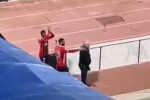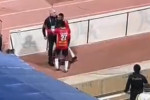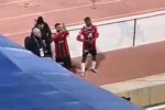 Antrenorul a fost ținut de doi jucători și, după câteva schimburi de replici cu unii dintre fani, a plecat spre vestiare.