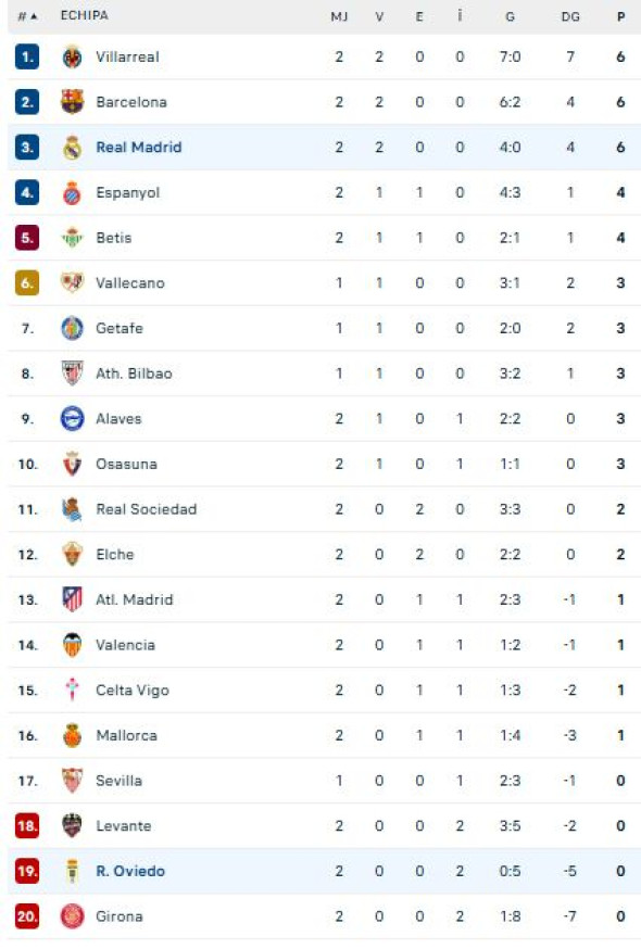 Clasamentul din La Liga, după Oviedo - Real Madrid 0-3
