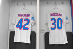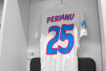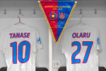 Unul dintre echipamentele de rezervă al celor de la FCSB este alb, cu mici accente de roșu și albastru