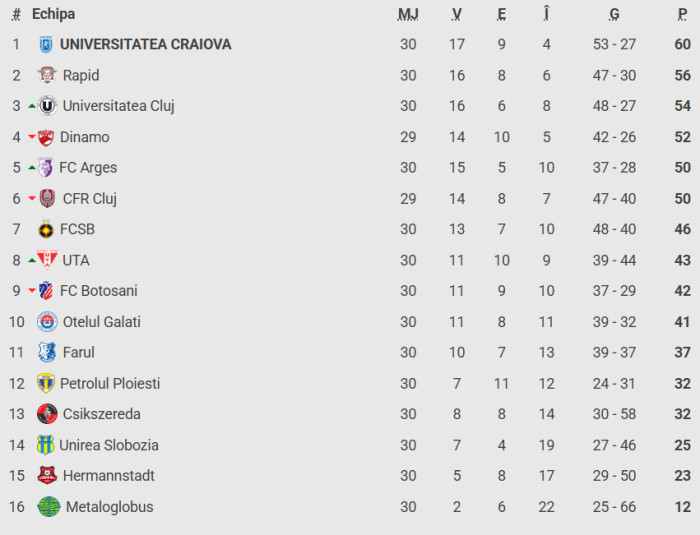 Clasamentul din SuperLiga: