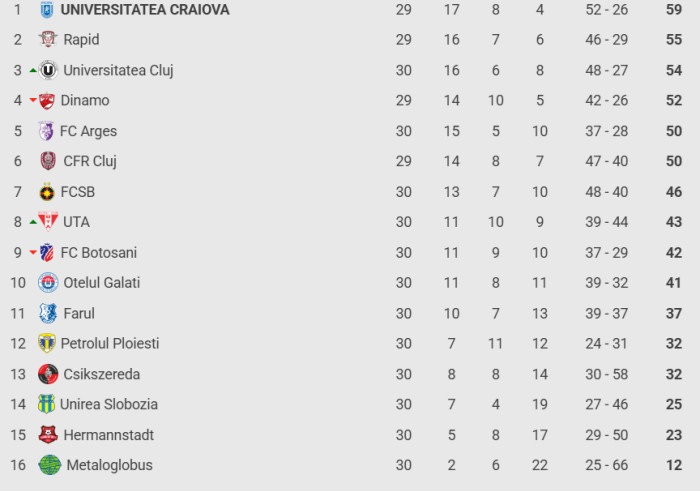 Clasament SuperLiga