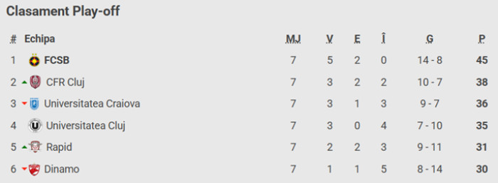 În urma acestui succes, cu 3 runde rămase de disputat, FCSB conduce ierarhia play-off-ului cu 45 de puncte, la 7 lungimi peste CFR Cluj, ocupanta locului secund. Universitatea Craiova, formația clasată pe poziția a treia, cu 36 de puncte, a ieșit din calculele pentru titlu, deși, teoretic, ar putea egala gruparea roș-albastră.