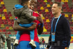 Rădoi a salutat toți copiii prezenți pe gazon, a bătut cuba cu Zian, băiatul lui Florin Tănase și mai apoi cu cel al lui Mihai Popescu, după care a zăbovit puțin mai mult alături de Joyskim Dawa și de fiul său, în vârstă de doi ani, pe care-l ținea în brațe.