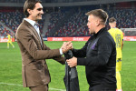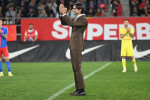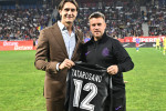 Fostul portar, care și-a anunțat retragerea zilele trecute, a dat lovitura de start și a avut parte de o primire emoționantă. ”Super Tătă” a fost aplaudat la scenă deschisă, galeria roș-albaștrilor -a strigat numele, iar Mihai Pintilii (39 de ani), actualul antrenor al echipei, i-a dăruit un tricou imprimat special pentru acest moment.