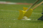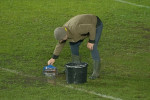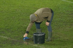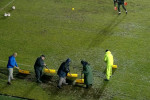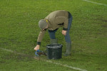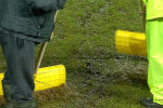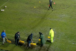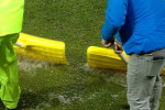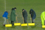 Organizatorii au făcut eforturi pentru a curăța suprafața de joc de apă. Sau folosit teuri, dar și un făraș, numai că toată munca a fost în zadar.
