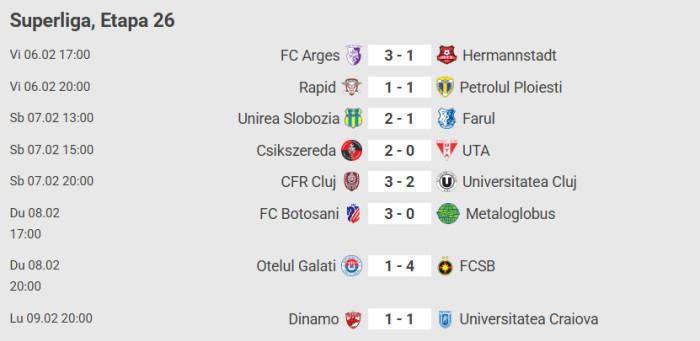 Rezultatele din etapa 26