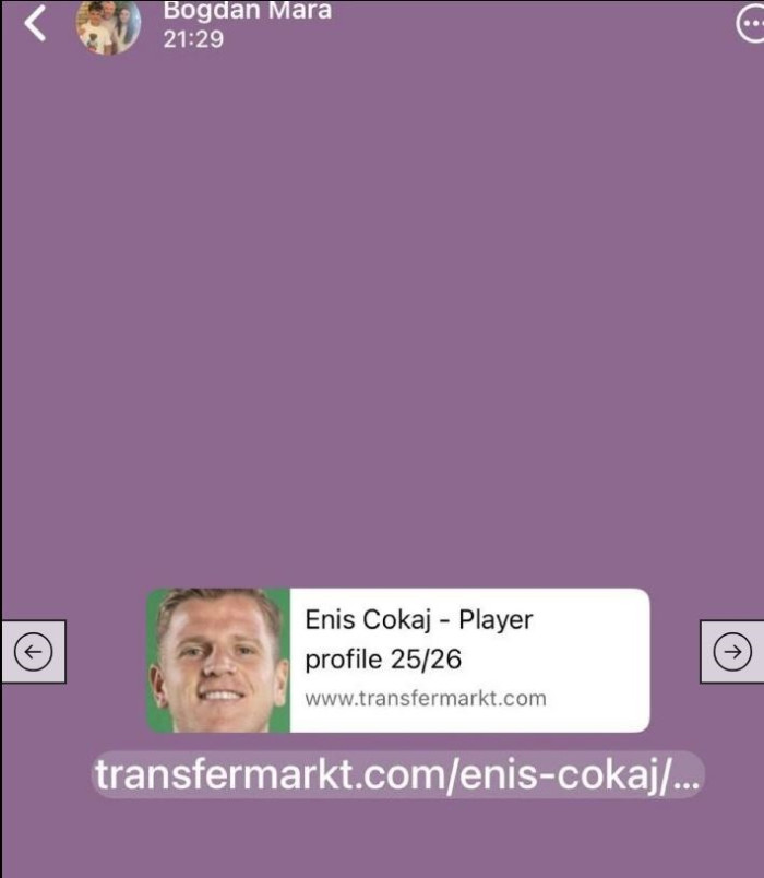 Concret, oficialul ardelenilor, a postat o poză cu profilul lui Enis Cokaj (26 de ani), mijlocaș defensiv, luat de pe Transfermarkt, la statusul de pe whatsapp, susține iamsport.ro.