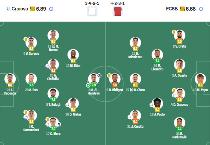 Toate notele, conform Sofascore, după Craiova - FCSB 1-0: