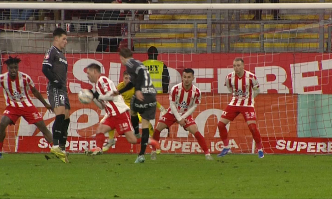 Pe imagini se poate observa cum Pospelov are însă brațul foarte aproape de corp. Din camera VAR, arbitrul Iulian Dima i-a recomandat lui Colțescu să revadă faza la VAR.