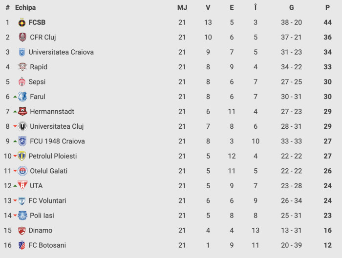 Clasamentul SuperLigii