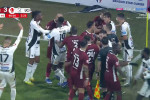 Bergodi și-a ieșit din minți și a sărit ”la gâtul” jucătorilor de la CFR. Andrei Cordea și Karlo Muhar au fost ”victimele” tehnicianului italian, care a fost eliminat direct. Bergodi i-a lovit pe cei doi și a fost ținut cu greu de elevii și colaboratorii săi. Cordea a fost ținta italianului, iar Muhar a fost prins la mijloc.