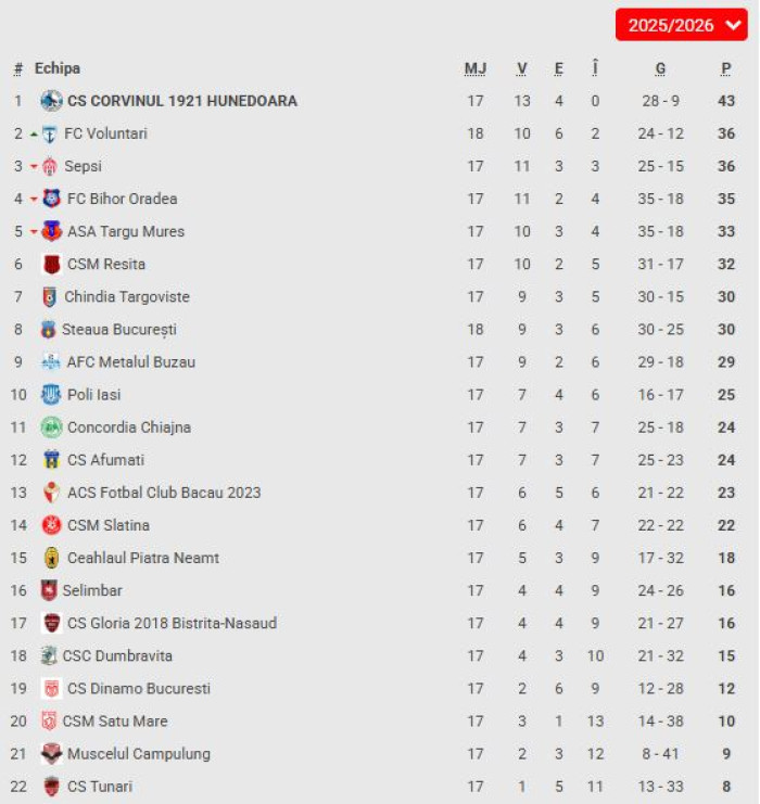Clasamentul Ligii 2, după Voluntari - Steaua 2-0
