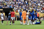 După fluierul final, cele două tabere s-au luat la ceartă, iar antrenorul spaniol s-a dus direct la un jucător de la Chelsea, Joao Pedro, și i-a băgat mâna în gât! Imaginile de mai jos au făcut la acel moment înconjurul lumii.