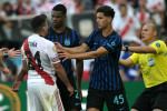 Scandalul a plecat de la contrele dintre Denzel Dumfries și Marcos Acuna. Cei doi s-au ”ciocnit” de mai multe ori de-a lungul meciului și a fost evident că jucătorul lui River a făcut tot posibilul să-l scoată din sărite pe fundașul lui Cristi Chivu, care avea un cartonaș galben.