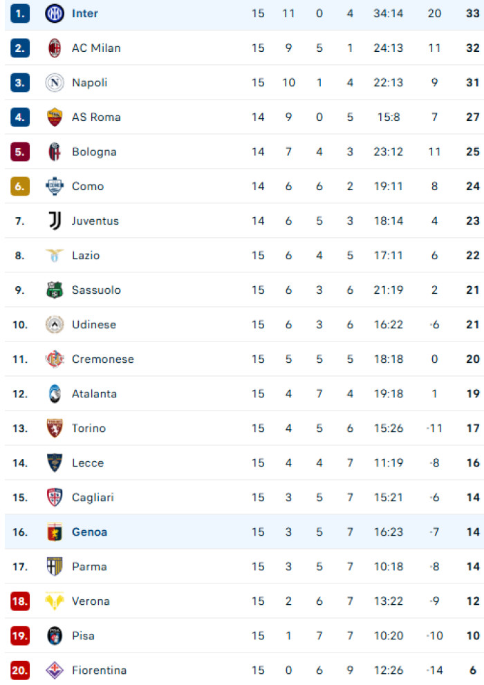 Clasamentul din Serie A