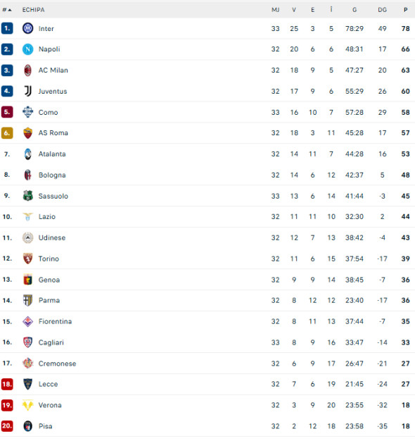 Clasamentul din Serie A