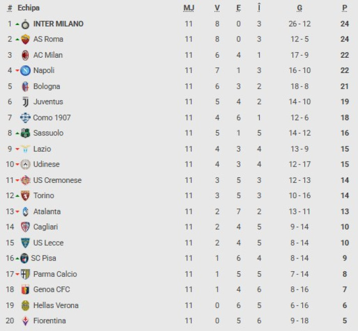 Clasamentul din Serie A