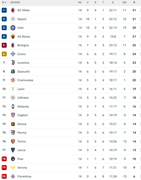Milan a câștigat astfel dramatic și a urcat pe primul loc în Serie A cu 31 de puncte, la egalitate cu Napoli, dar cu un golaveraj superios. Torino se află pe locul 16, cu 14 puncte.