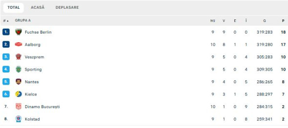 După acest rezultat, Dinamo este pe locul 7, cu două puncte, în timp ce Aalborg este pe 2, cu 17 puncte.