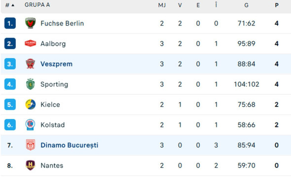 Dinamo a reușit să treacă la conducere în a doua parte și să aibă două goluri avantaj, dar ”Dulăii” au ”clacat” în ultimele 15 minute. Veszprem a reușit să întoarcă scorul și să se impună la 3 goluri diferență.