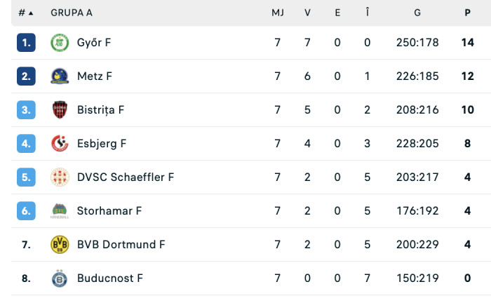 Grație succesului, Bistrița a ajuns la 10 puncte și este pe locul 3 în Grupa A din EHF Champions League. Dortmund rămâne cu patru puncte și este penultima.