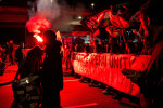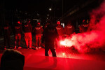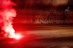 Un grup de aproximativ 100 de protestatari a aruncat cu petarde, bombe fumigene şi sticle în poliţi,e după ce s-a desprins de grupul principal al unei demonstraţii din Milano.