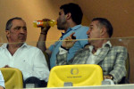 Îmbrăcat cu hainele care îi poartă și numele, cele accesorizate cu o cruce roșie, patronul celor de la FCSB nu avea cum să treacă neobservat.