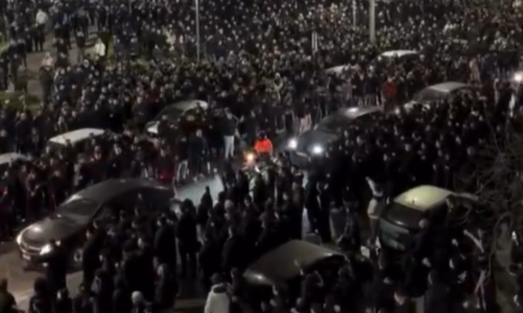 Aceștia au cântat și au aprins torțe în momentul în care mașinile care transportau sicriele au trecut pe lângă ei.
