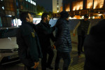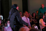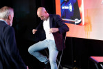Luis Rubiales a reuşit să evite două, dar un al treilea l-a lovit în spate. Atacatorul a fost imobilizat, scos din încăpere şi ulterior arestat, permiţând evenimentului să continue fără alte incidente (FOTO sus).