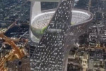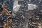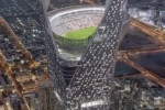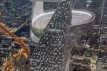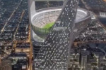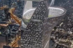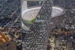 Imaginile din galeria de mai jos, cu un proiect fără precedent pentru un stadion de fotbal, cu arena aflată în vârful unui zgârie-nori, la 350 de metri deasupra solului, s-au viralizat în întreaga lume, dar totul s-a dovedit a fi un fals.