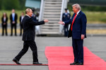 Cei doi președinți au ajuns cu avioanele private în Alaska. Primul care a aterizat a fost Donald Trump, care l-a așteptat pe Vladimir Putin la scara aeronavei, apoi cei doi au plecat împreună în aceeași mașină, limuzina prezidențială a Statelor Unite ale Americii, scrie Marca.